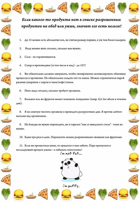 Как видите, со стороны все кажется довольно простым и безобидным. Так что, если вы не стремитесь к «пляжному телу», а просто желаете убрать пару-тройку лишних килограммов, достаточно соблюдать эти несложные правила. Конечно, лишний вес не всегда является следствием человеческой лени и неправильного питания. Порой это сопутствующий симптом серьезных заболеваний, и в этом случае соблюдение строгих диет может плачевно сказаться на общем состоянии организма.