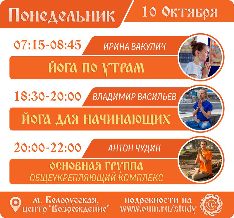Клуб йоги oum.ru представляет собой группу единомышленников, которые стремятся вести здоровый образ жизни, развиваться и совершенствоваться, познавать себя. В клубе достаточно много опытных преподавателей, которые занимаются йогой на протяжении довольно длительного времени, и имеют многолетний опыт преподавания. Клуб oum.ru приглашает всех желающих присоединиться к членам клуба и начать посещать занятия, расписание можно найти на официальном сайте oum.ru.