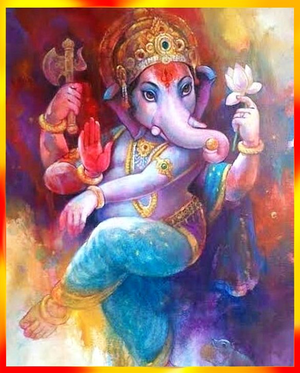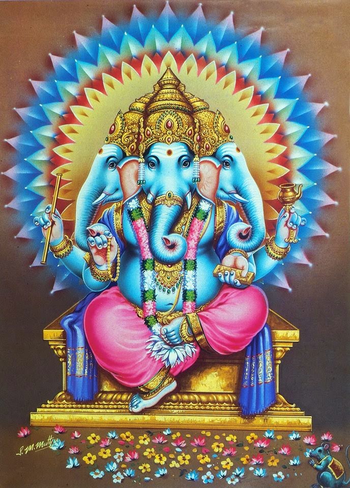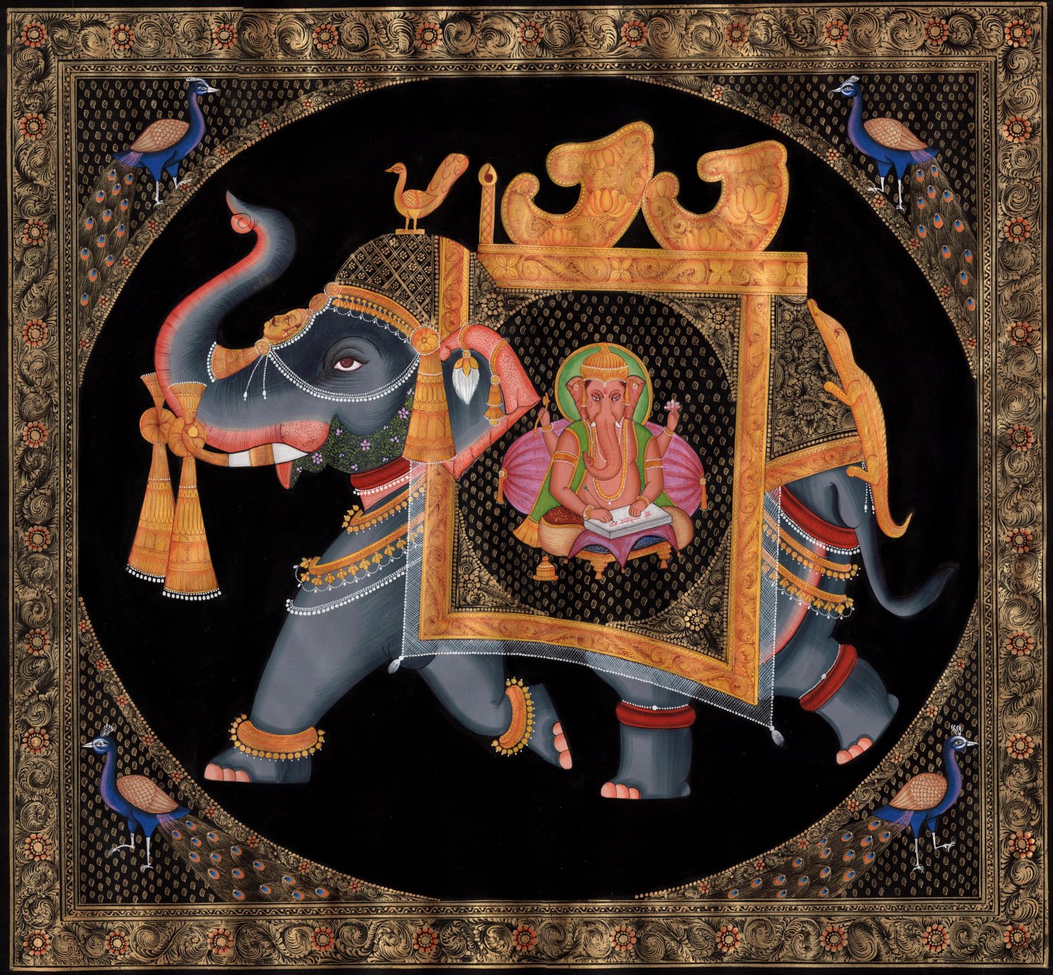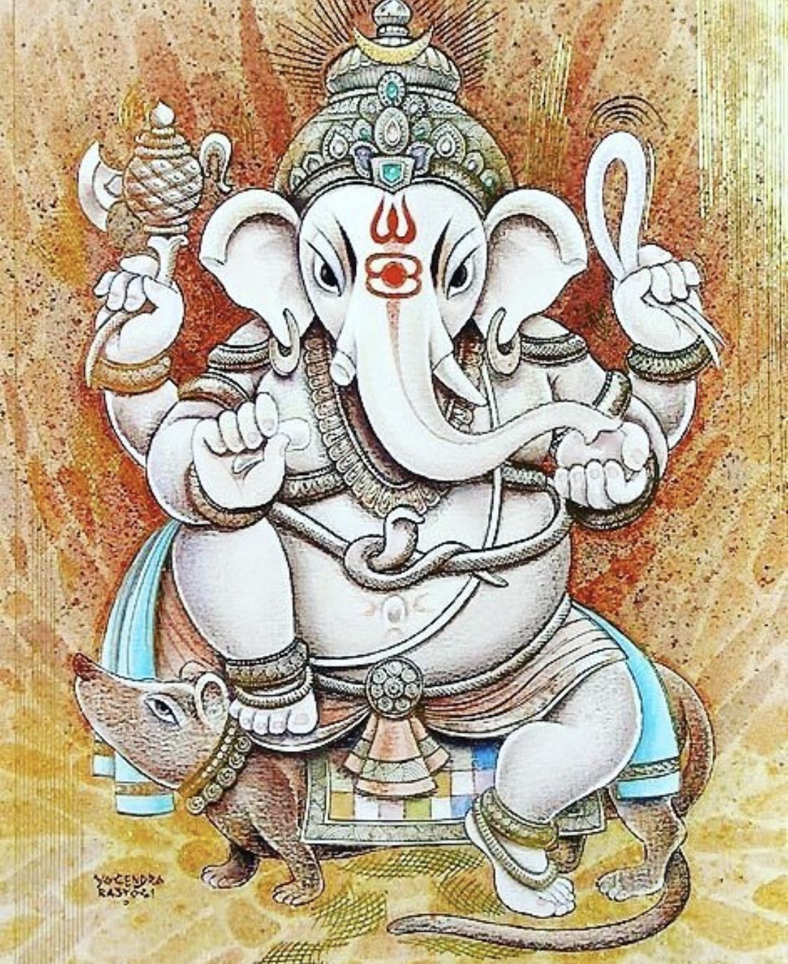 Самая известная картина – «Ганеша Медиум» автора Вриндавана Дас, где божество изображено со сломанным бивнем. Индийский эпос повествует о том, что Ганеша потерял его в битве с великаном.
