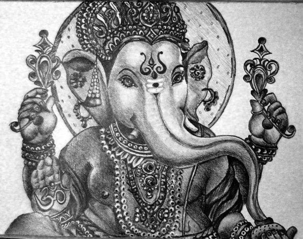 Ганеша пожертвовал одним бивнем для того что бы записать все Веды для человечества.