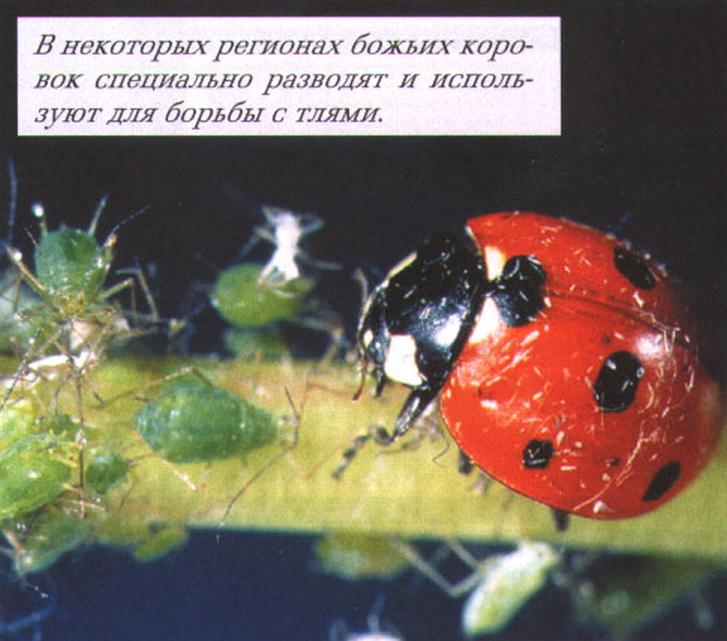 За световой день он может употребить более пятидесяти насекомых-тлей, одних из самых опасных вредителей культурных насаждений. А одна растущая личинка божьей коровки настолько активна, что может уничтожить аж до полутора сотен тлей. Посему для этих насекомых выпуклый жучок с яркой раскраской является врагом номер один.