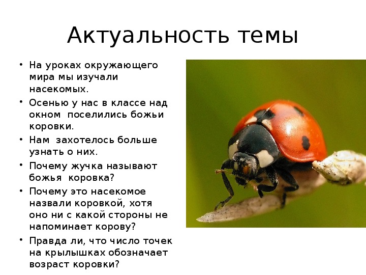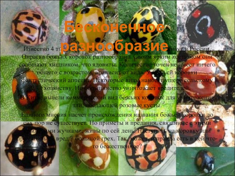Среди всех насекомых, обитающих в наших широтах, именно божья коровка пользуется самым большим уважением и почетом. Ведь даже само название – «божья коровка» говорит о некой божественности этого существа.
