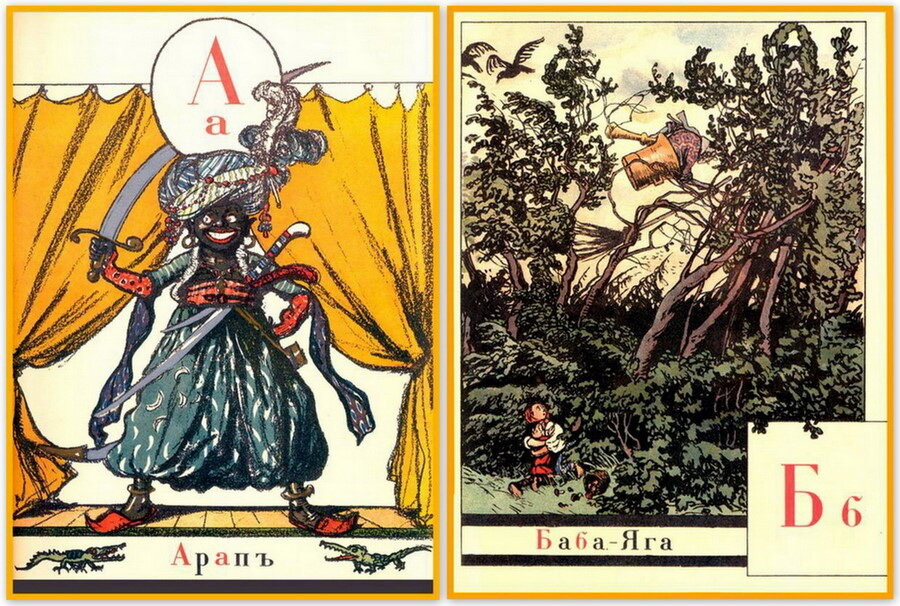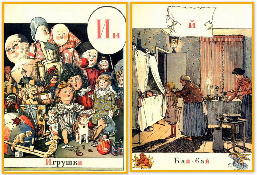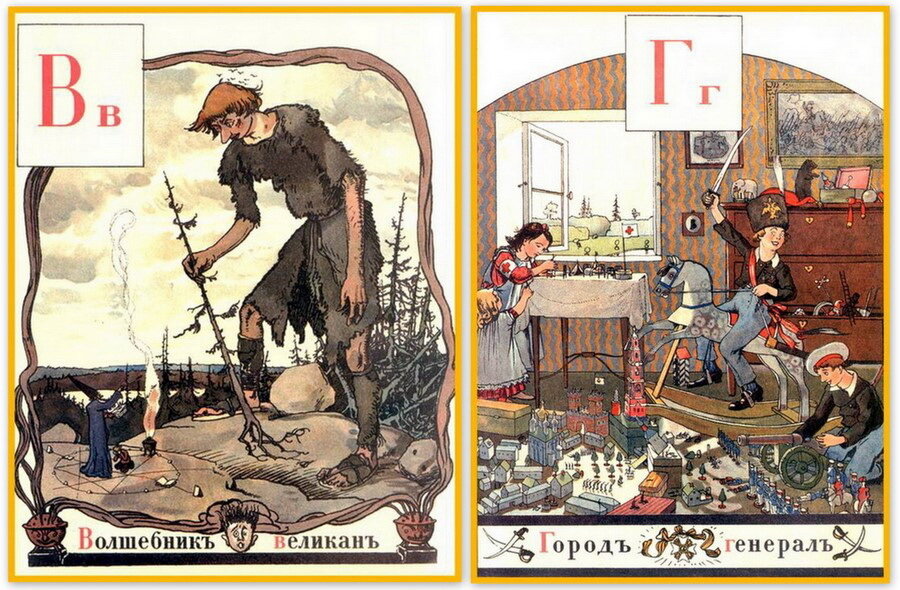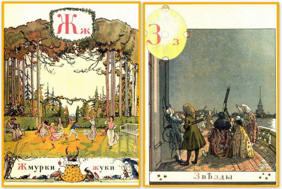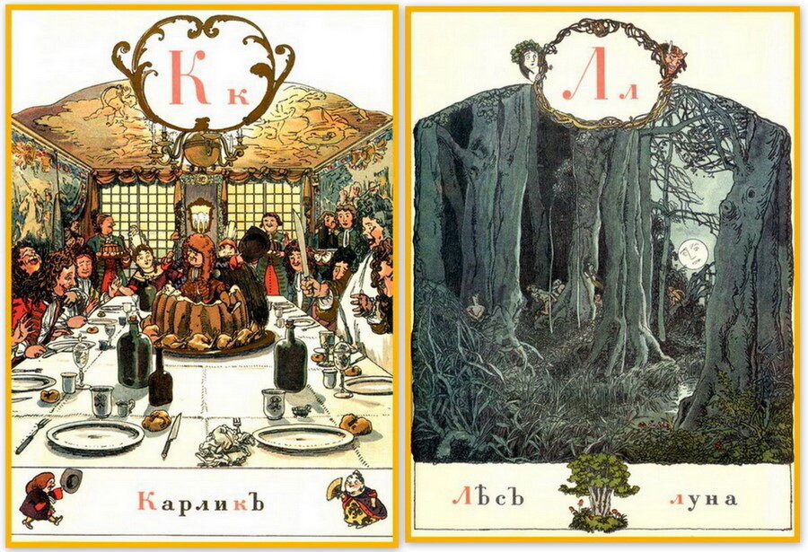 Замысел состоит из сравнения славянских буквиц и образов к ним, подобранных в виде картин, и букв русского алфавита с соответствующими картинками, используемыми обычно в современном букваре. Старались помещать эти картинки так, чтобы они гармонизировали с общей тематикой Азбуки.