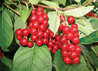 Красная черемуха (Виргинская черемуха). Это довольно ценное и неприхотливое растение. У виргинской черемухи много преимуществ по сравнению с черемухой обыкновенной или кистевой. Ее почти не поражают моль и тля, которые так сильно вредят обычной черемухе. Плоды ее крупнее, до 7 — 8 мм в диаметре, ярко или темно-красного цвета. Вкус приятный, кисло-сладкий, плоды не такие терпкие. В плодах содержатся сахар, яблочная и лимонная кислоты, до 37 мг % витамина С, танниды. Их ценность еще и в том, что они содержат амигдалин, который способствует укреплению сердечно-сосудистой системы.