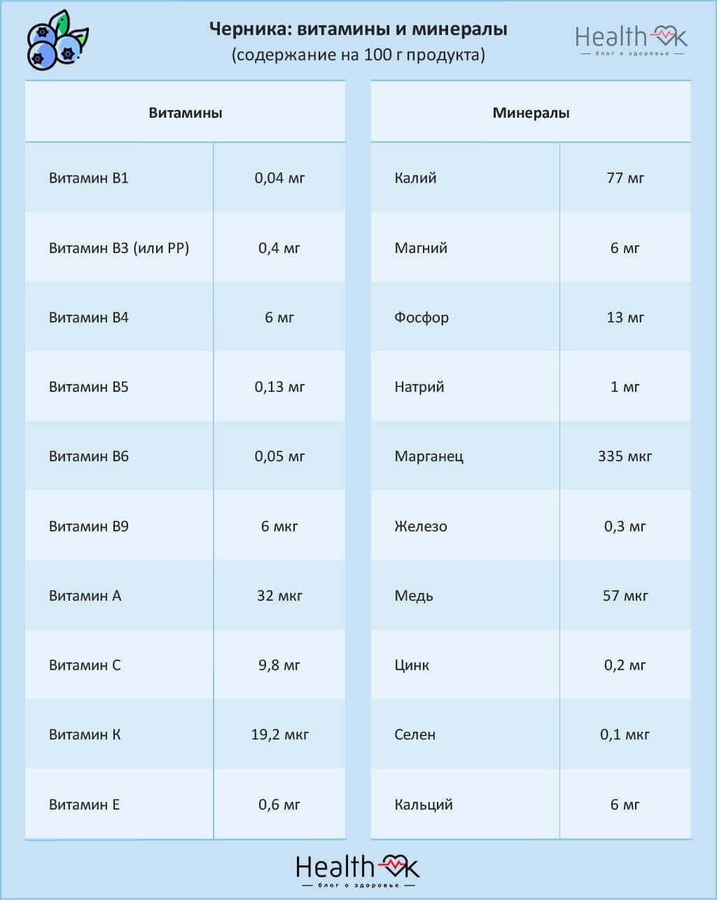 Состав черники: