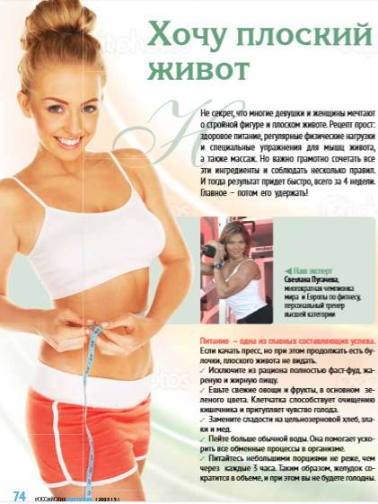Теперь ты знаешь, как привести свой животик в порядок. Начинай действовать уже сегодня! И, конечно, не забывай много двигаться, хорошо спать (люди, которые спят больше, весят меньше – и отлично себя чувствуют!) и в целом поддерживать здоровый образ жизни, чтобы все твои усилия не были напрасны.
