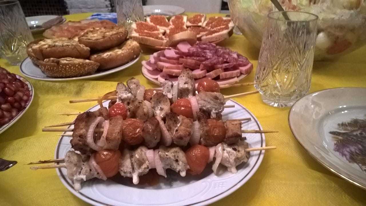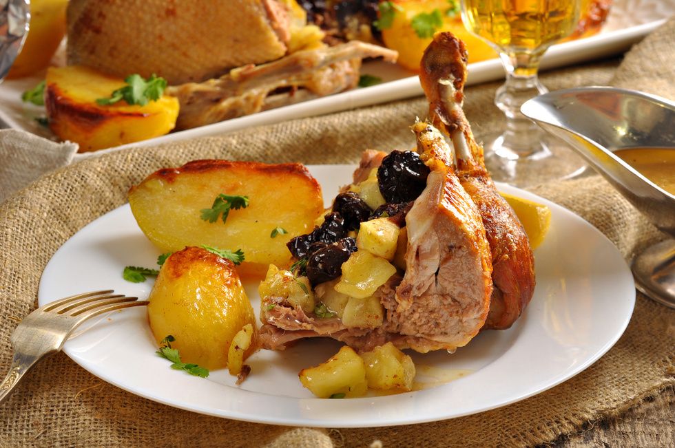 Запеченная колбаса из индейки и фаршированные ракушки из маскарпоне