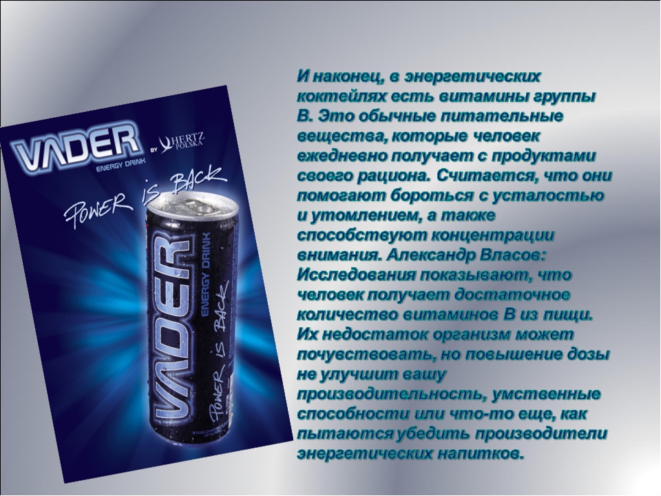 Витамины, которые содержатся в энергетических напитках, не могут заменить