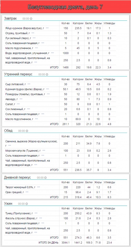 - Количество потребляемых углеводов сокращается от 0 до 30 грамм в день.