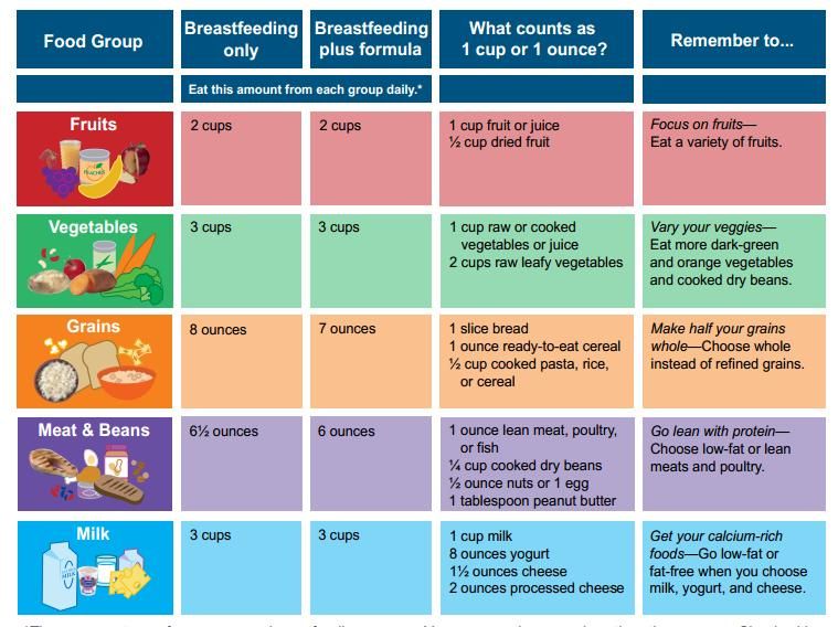 Посетите ChooseMyPlate.gov, чтобы получить индивидуальный план питания для кормящих женщин.