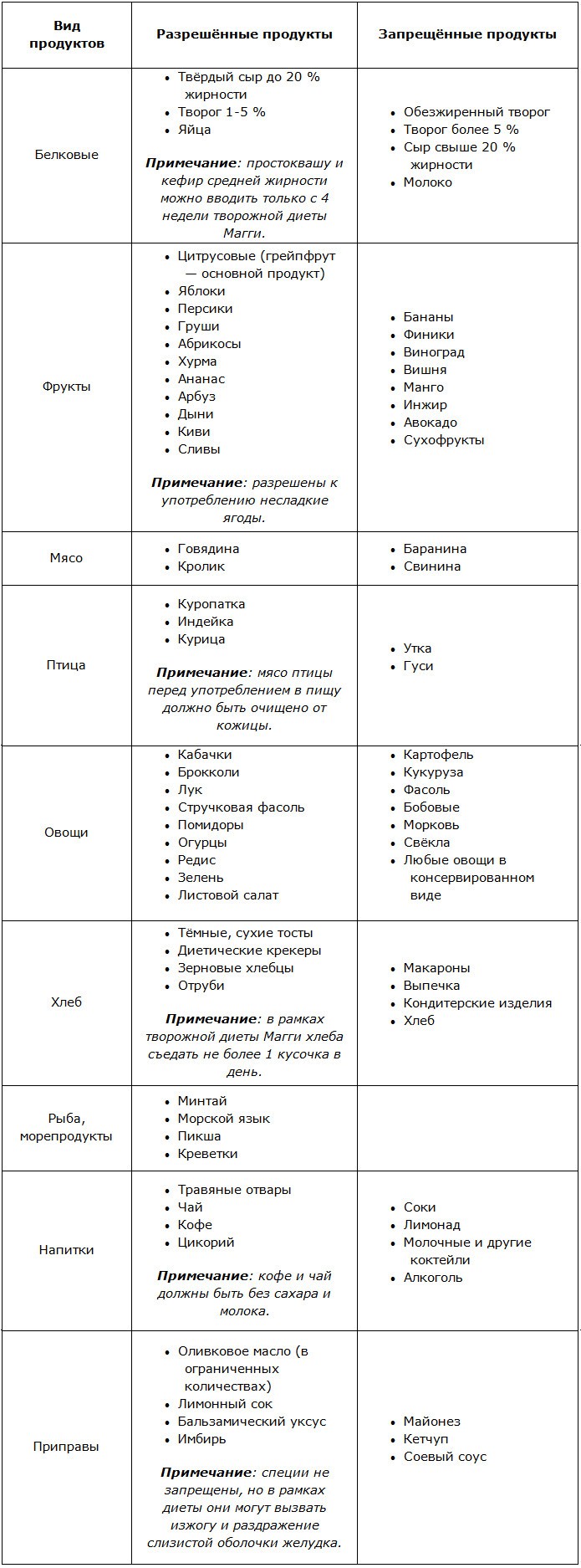 В зависимости от основного продукта в меню выделяют такие виды диеты «Магги»: