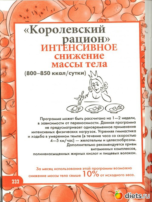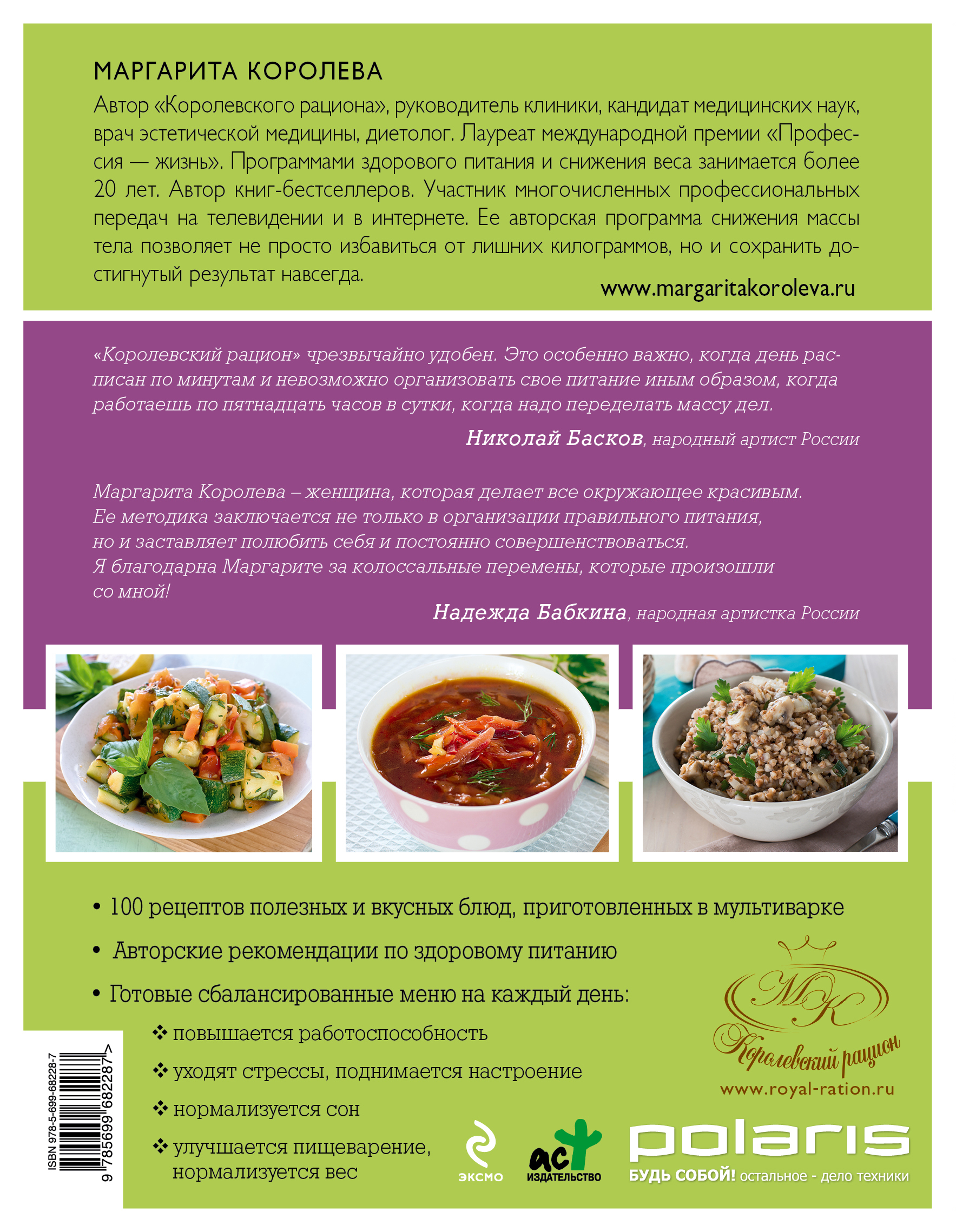 Позволяет меню диеты Маргариты Королевой похудеть навсегда благодаря обучению правильному пищевому поведению.