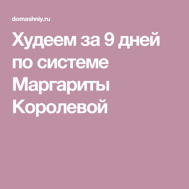9-дневная диета от Маргариты Королевой! Полное меню!