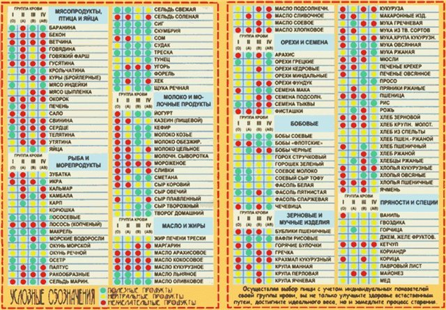 Соответственно этим различиям была разработана таблица продуктов, характерная для различных типов групп крови.