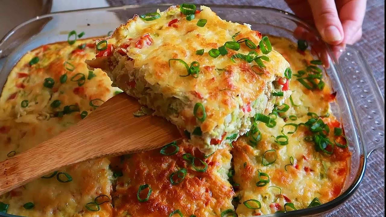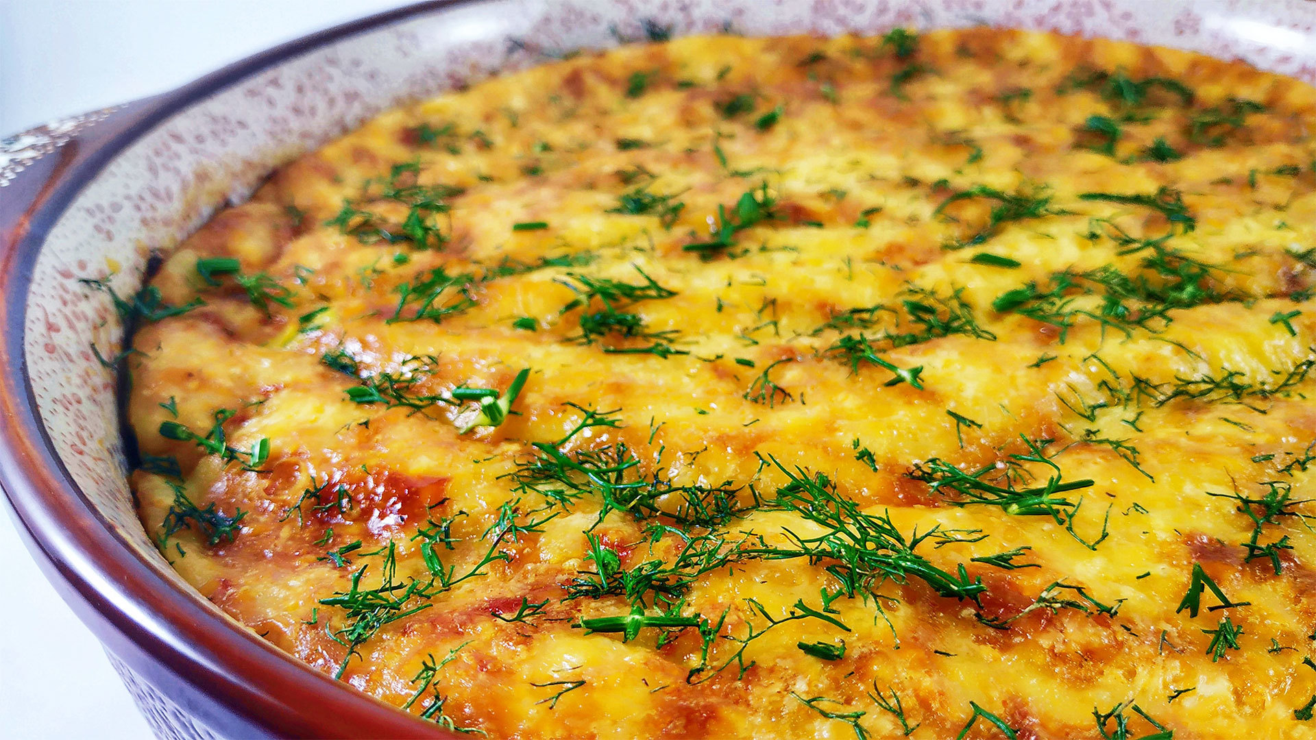 Легкий рецепт из кабачков на каждый день. Омлет из овощей под сырной корочкой готовится в духовке без использования масла. Если вы хотите понизить калорийность блюда, можете исключить из яичной заливки желтки, тогда пищевая ценность изменится в меньшую сторону.
