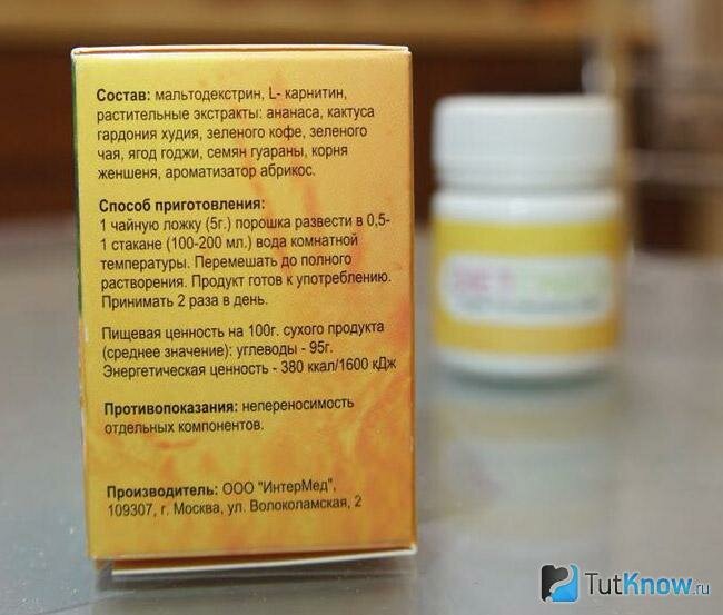 - Действие: Блокирует синтез жиров, Расщепление жировых отложений, Снижение аппетита, Блокирует синтез жиров, Сокращение жировых отложений, Ускоряет процесс обмена веществ