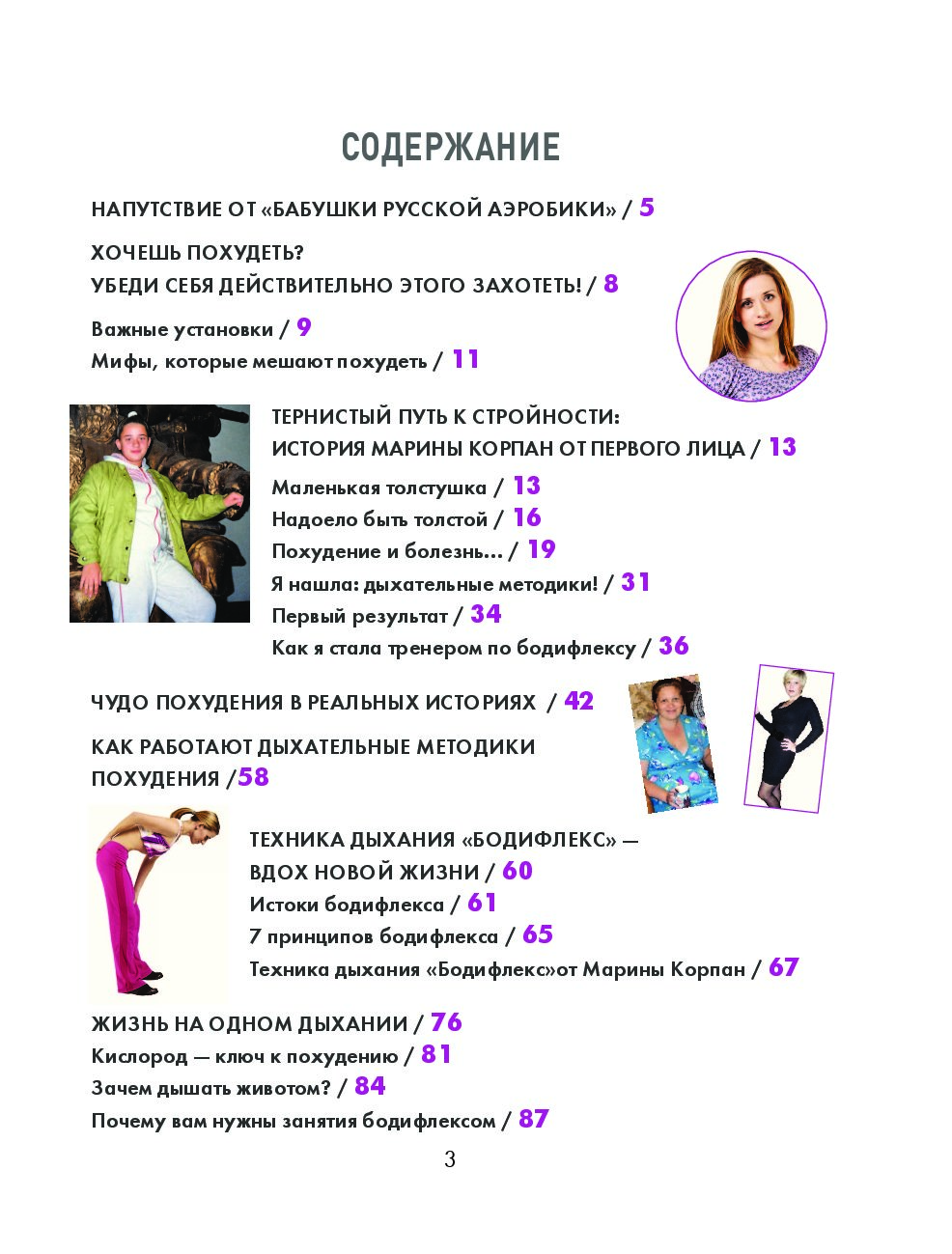 Марина Корпан – известный специалист по бодифлексу, оксисайзу и другим дыхательным техникам для похудения.Кроме того, она является самым популярным инструктором канала Live. То, что она предлагает для похудения, нельзя назвать диетой, но этот метод похудения на самом деле очень эффективен. Специальные дыхательные упражнения давно используются для похудения и основаны на дыхательных практиках йоги. Но Марина Корпан адаптировала их специально для похудения. Точнее, не лично, а Грир Чайлдерс. Именно книга этого автора «Похудеть за 15 минут» помогла Марине победить врожденную полноту.