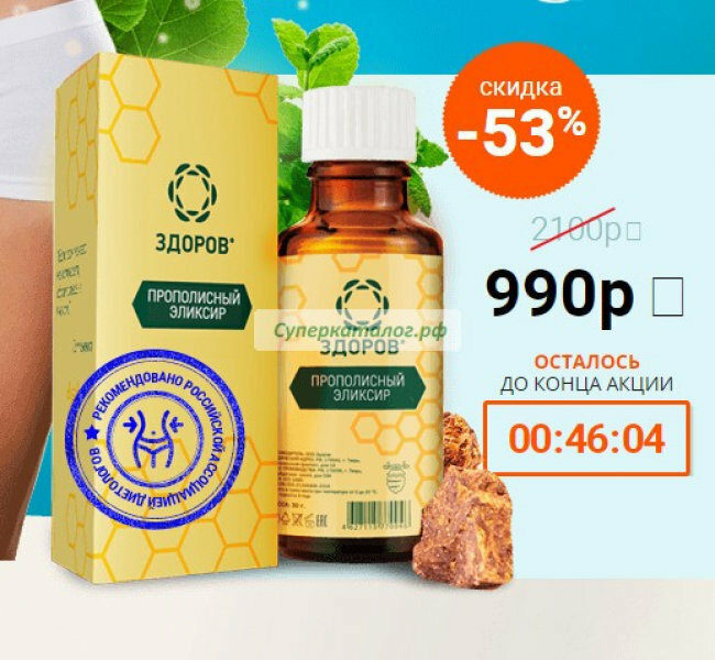 Состав эликсира стройности «ЗДОРОВ» полностью натурален и содержит активные экологически чистые экстракты. Главным действующим веществом является прополис – уникальный природный компонент, оказывающий обширное регенерирующее действие. Поскольку во избежание подделок состав эликсира «ЗДОРОВ» для похудения хранится в строгом секрете, мы считаем своим долгом подчеркнуть, что все компоненты прошли тщательный отбор и многоступенчатый контроль качества, а уникальная технология экстрагирования в раствор позволила исключить любые аллергические реакции и прочие побочные эффекты.