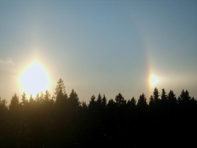 - редкие гало (один раз в год, в несколько лет): 46° гало, 9° гало, касательные дуги (46°), окологоризонтная дуга, паргелический круг, субсолнце