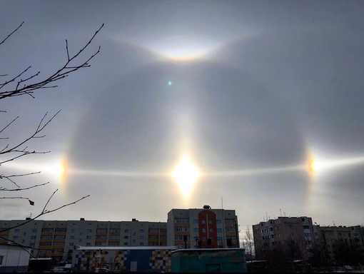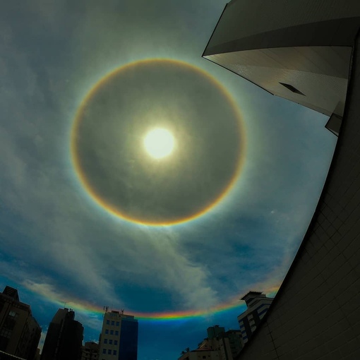 «Редкое оптическое явление «Гало-22» наблюдалось в Москве. Гало — группа атмосферных оптических явлений, характеризуемая возникновением вторичного свечения вокруг источника света, как правило, имеющее форму круга, кольца, дуги, светового столба или «алмазной пыли», — рассказал Тишковец.Он отметил, что гало обычно появляется вокруг Солнца или Луны, иногда вокруг других мощных источников света, таких как уличные огни. Существует множество типов гало, но все они вызваны преимущественно ледяными кристаллами в перистых облаках в верхних слоях тропосферы.»Гало-22″ наиболее часто видимое гало. В малом 22-градусном гало различима только часть цветов спектра (от красного до жёлтого), остальная часть выглядит белой из-за многократного смешения преломленных лучей. Паргелический круг и ряд других дуг гало почти всегда белые. Следует отличать гало от венцов. Последние имеют меньший угловой размер (до 5°) и объясняются дифракционным рассеянием лучей источника света на водяных каплях, образующих облако или туман», — добавил синоптик.