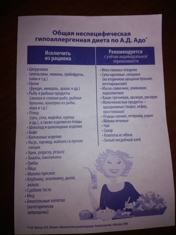 Из-за неопределенности относительно пользы и вреда исключения из диеты для людей с атопическим дерматитом Bath-Hextall и др. . [19] провели систематический обзор всех соответствующих рандомизированных контролируемых исследований. Они нашли некоторые доказательства в поддержку использования без яичной диеты у младенцев с подозрением на аллергию на яйца и положительный специфический IgE к яйцам в их крови.Только два из 11 включенных исследований были протестированы на пищевую аллергию [20,21], но эти исследования касались сравнения двух различных форм исключающих диет, а не сравнения исключающей диеты и нормальной диеты, и поэтому не повлияли на вопрос. полезна ли для таких людей какая-либо форма исключения из диеты. В других исследованиях с участием неотобранных людей с атопическим дерматитом не было обнаружено никаких доказательств пользы исключающих диет. Избавиться от элиминационной диеты бывает сложно.Об исследованиях, опубликованных в Bath-Hextal et al . обзор [19] был проведен в разных популяциях, и только в одном исследовании представлены данные о степени тяжести атопического дерматита. Клиническая важность небольших изменений в шкале тяжести, полученных во многих исследованиях, неизвестна. Хотя обычно рекомендуются диеты, исключающие такие продукты, как коровье молоко, мало доказательств в пользу их пользы для неизбранных людей с атопическим дерматитом. [19]