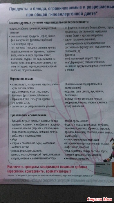 Список запрещенных продуктов:- Цитрусовые (апельсины, мандарины, лимоны, грейпфруты).