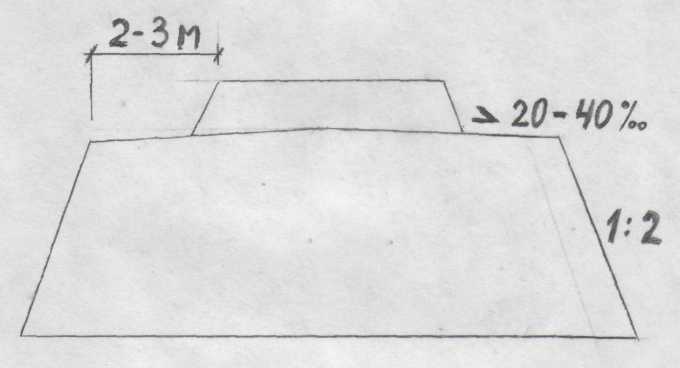 1. с сохранением слабого основания, когда подошва насыпи находится на торфе.