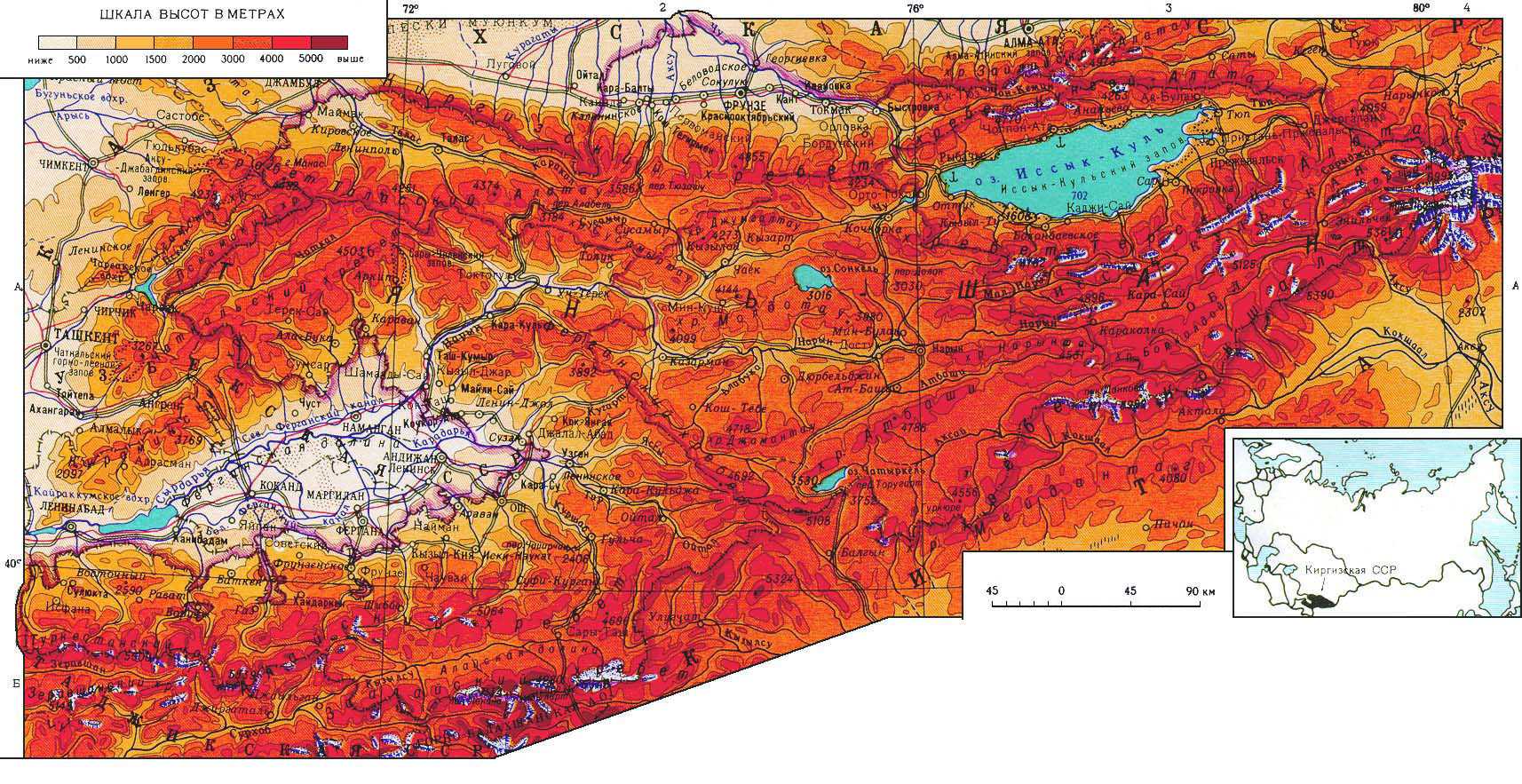 Кыргызстан — горная страна. Практически вся его территория лежит выше 500 м.
