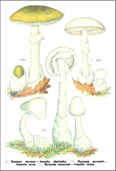 Центр — это предсмертная шапка (мухомор фаллоидный) — той, что изображена на этой картинке, будет достаточно, чтобы убить вас. Подробнее о Death Caps…
