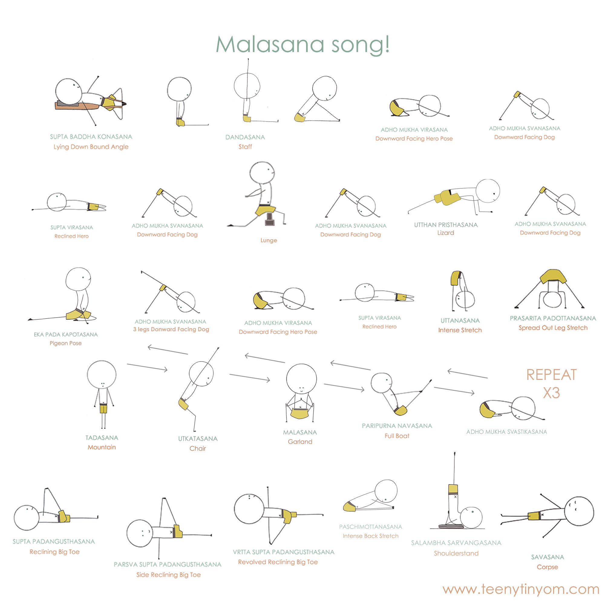В этой таблице мы перечислили последовательность асан , которую нужно попробовать; естественно, вы можете заменить некоторые из этих поз своими любимыми.