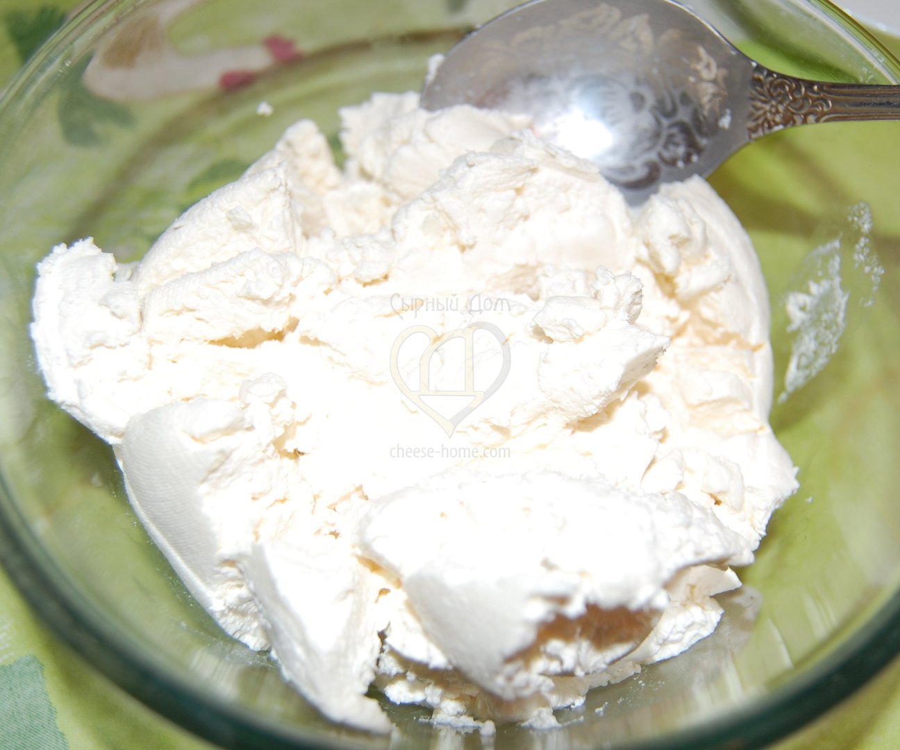 Сливки поставить в теплое место на 2 дня. Затем прокисшие сливки процедить через марлю, отжать лишнюю сыворотку, поместить полученную массу под пресс весом примерно 2 – 3 кг. Оставить на 30 мин, затем вынуть сыр из марли.