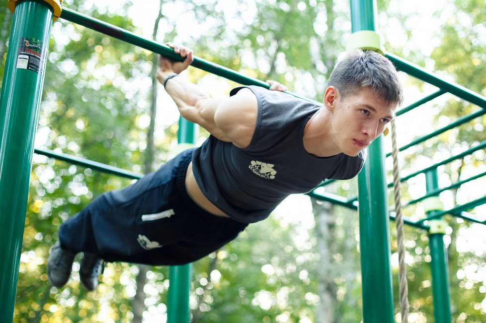 - Выходы силой позволяют серьезно развить мускулатуру верхней половины тела. Во время высоких подтягиваний у вас активно работают широчайшие мышцы спины и бицепсы, а во время отжиманий — грудные мышцы и трицепсы.