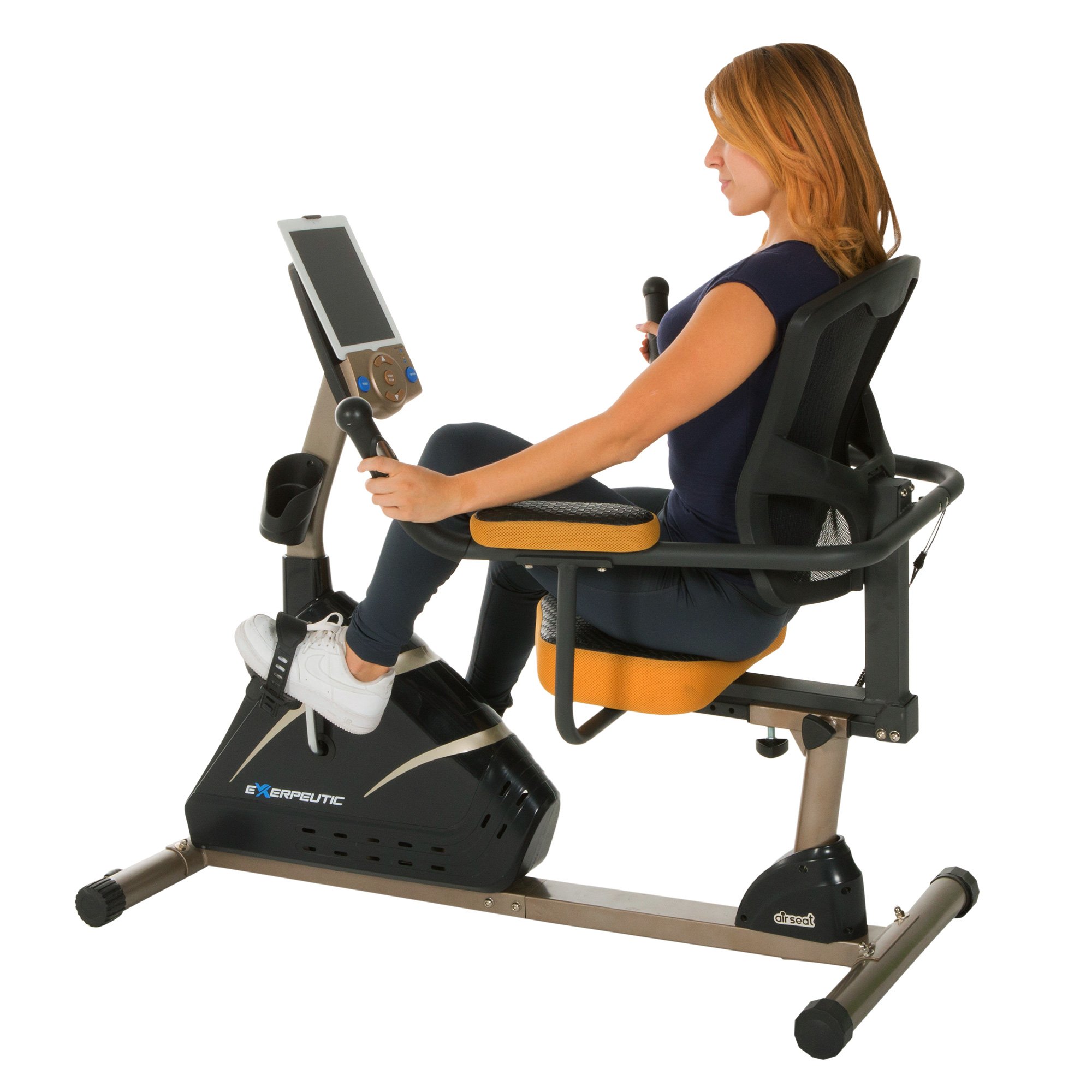 Лежачий велотренажер похож на вертикальный, но имеет несколько отличий.Вместо того, чтобы крутить педали прямо вниз, педали расположены перед вами. У вас также есть сиденье в виде стула, которое поддерживает вашу спину и создает более расслабленное и удобное положение. Active сказал, что это сиденье способствует лучшей осанке позвоночника и позволяет выполнять несколько задач из-за отсутствия рук.