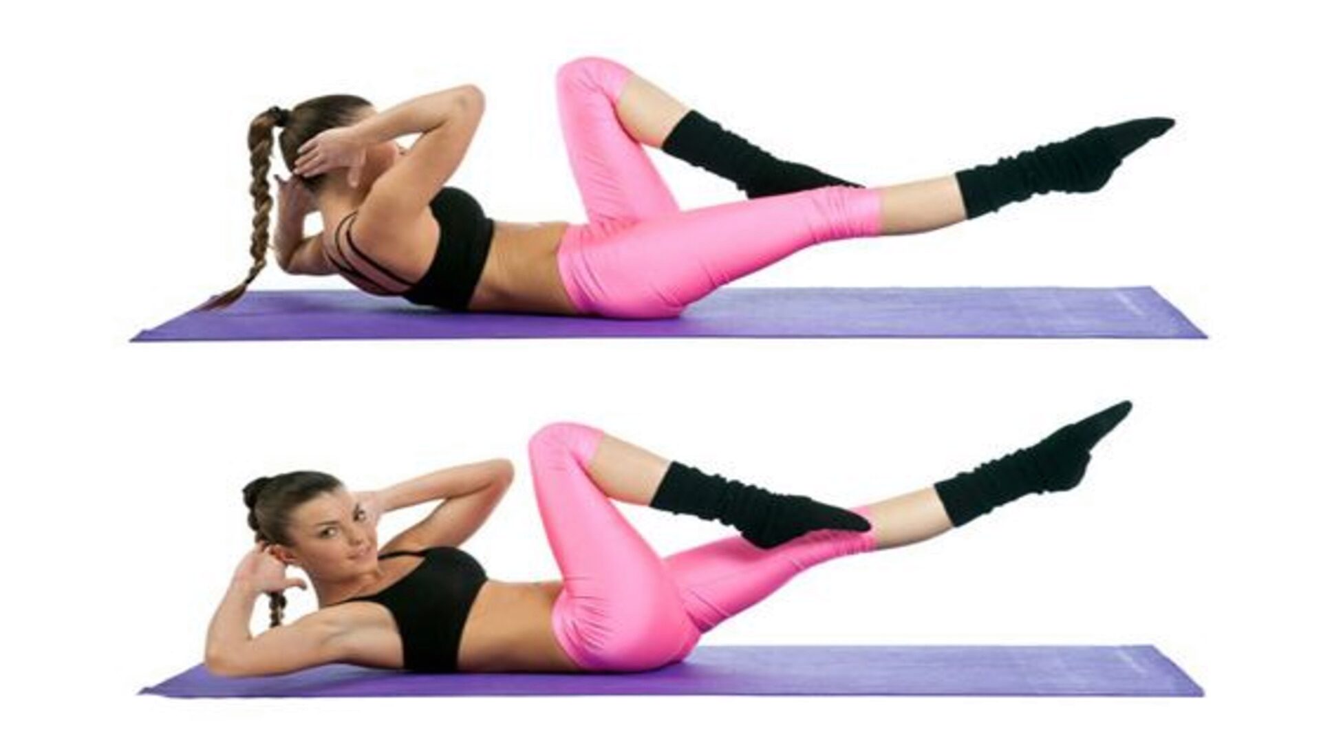 - Сделайте скручивание, поставив колено и локоть навстречу друг другу.