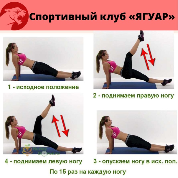 Сделайте два подхода по 15-20 раз для каждого бока.