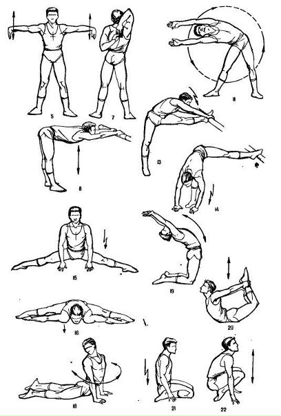 Помните: если вы выполнили все упражнения на растяжку и начали базовую тренировку, запрещается сидеть на стуле во время перерыва между упражнениями.Мышечная ткань расслабляется и теряет эластичность. Перерыв между занятиями должен происходить на ногах (можно лежать на полу, но не садиться). В противном случае вам придется снова повторять все упражнения на растяжку.