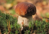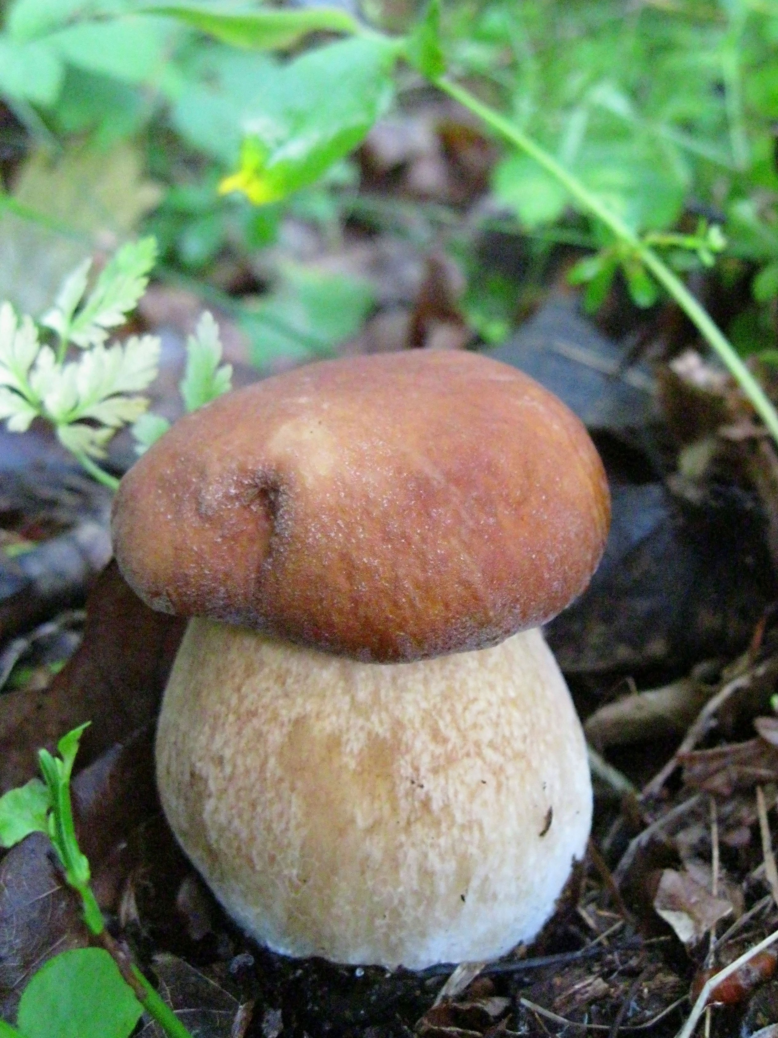Porcini: красновато-коричневая округлая шляпка с толстым цилиндрическим стеблем
