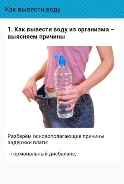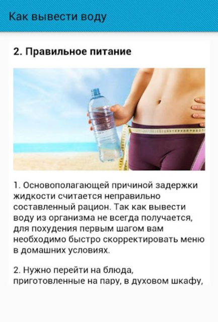 Клюквенный сок обладает легкими мочегонными свойствами 8. Пейте больше воды — задержка воды происходит из-за недостатка воды, потому что ваше тело не знает, когда оно получит больше, поэтому оно удерживает воду, которая у него есть.