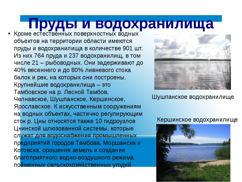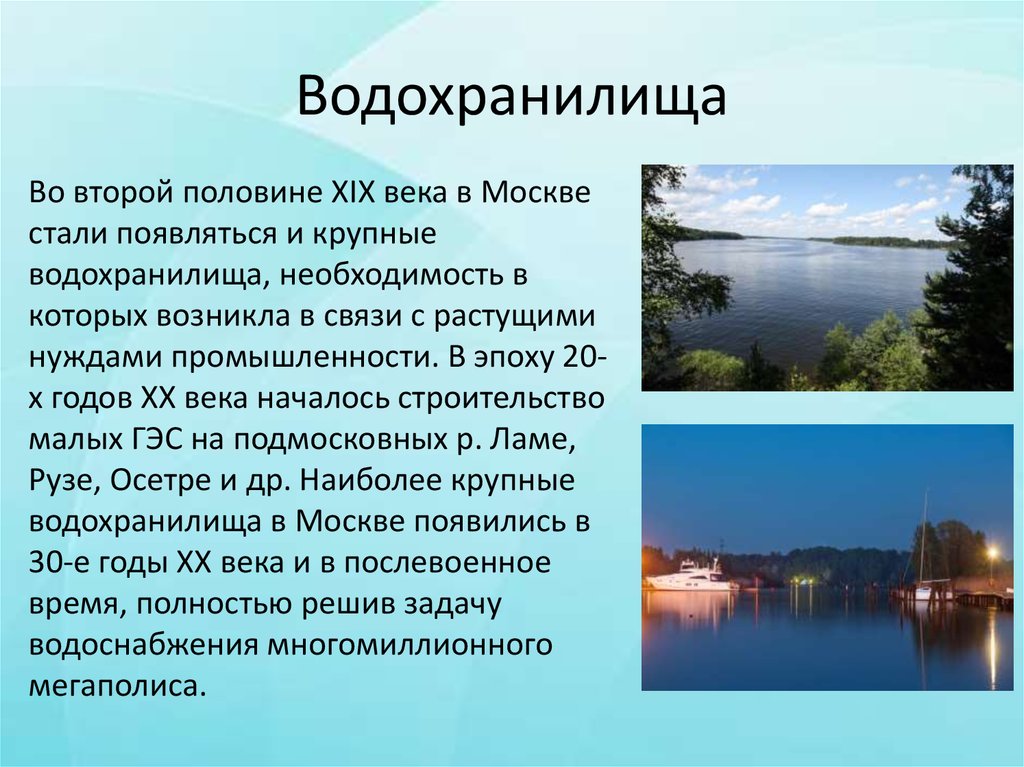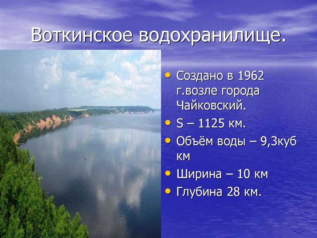 Их суммарный полный объем превышает 1 200 км 3, площадь зеркала составляет 87 тыс. км 2 (т;е, больше территории Австрии), а с учетом подпруженных озер – 145 тыс. км 2. На водохранилища России приходится около 15 % их общего количества в мире и 20 % объема площади. Длина береговой линии водохранилищ превышает длину береговой линии морей, омывающих нашу страну. На берегах водохранилищ проживает 20 млн. человек.