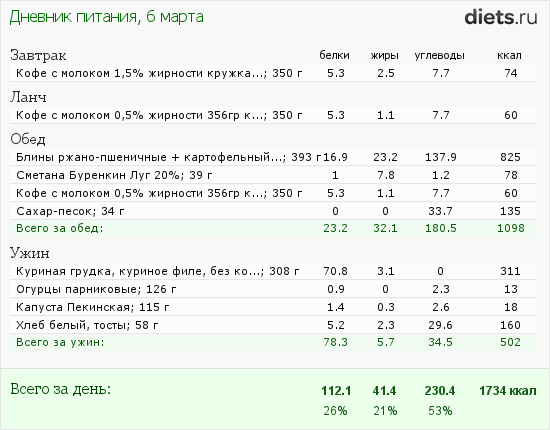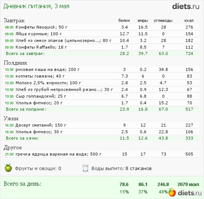 Итак, углеводов в рационе, раскрыла рацион!