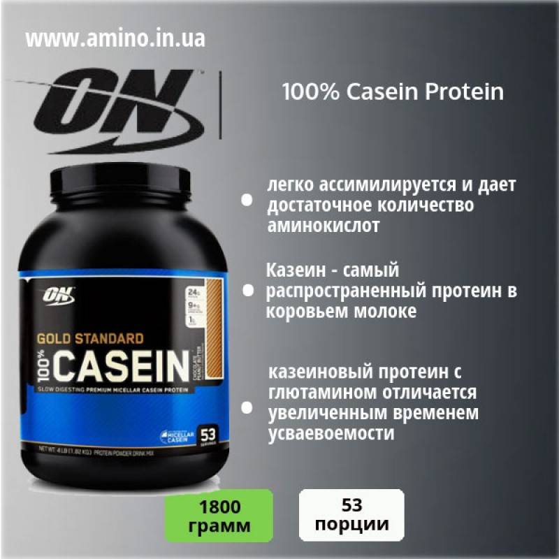Лидером среди добавок считается Gold Standard 100% Casein. Это комплекс, выпускаемый компанией Optimum Nutrition, в одном купе которого содержится 34 грамма протеина, 24 из которых приходится на казеин в чистом виде. Данный продукт лидирует среди аналогов, является ценным источником протеина, подавляющим катаболизм, стимулирующим прирост мышц.