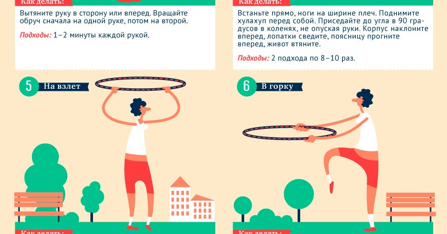 Начните медленноКогда у вас есть пяльцы, вы готовы начать. » Приступая к занятиям с хулахупом, как и к любому новому комплексу упражнений, начинайте медленно. Вы можете начать с небольших приращений от пяти до 10 минут пару раз в день и постепенно наращивать», — говорит Йенс.