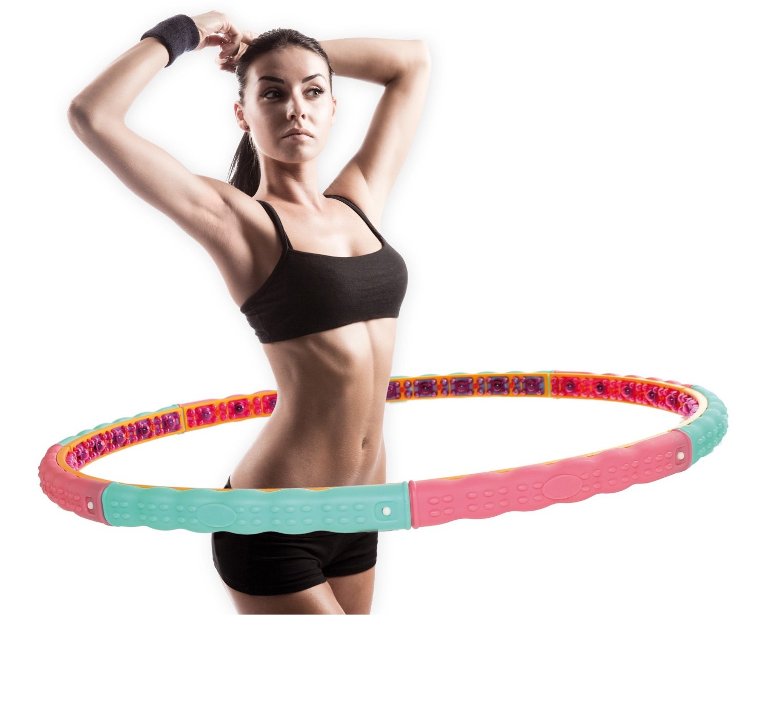 Более специализированный вид обруча – со специальными утяжелениями на корпусе. Наличие дополнительных элементов делают агрегат более тяжелым. Это значит, что во время занятий мы сжигает больше калорий, затрачивая большее количество усилий и энергии.