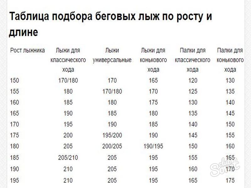 Коньковые лыжи должны соответствовать вашему росту и весу из-за развала коньков.