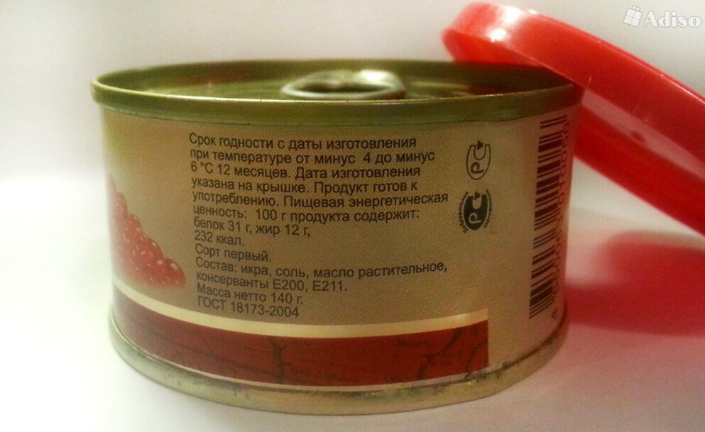 Еще запаха аммиака, лака и краски не должно быть – только тонкий рыбный аромат, и ничего химического. Главное, чтобы икра была в заводской упаковке, а не в открытой таре. Так в нее не попадут бактерии и грязь. И конечно, смотрим на дату изготовления и состав.
