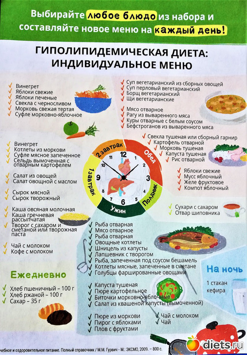 - Разделите еду на порции, кушайте 5-6 раз в день. Липидоснижающая диета не допускает чувство голода.