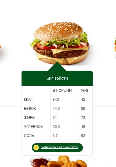 таблица калорийности продуктов Макдональдс