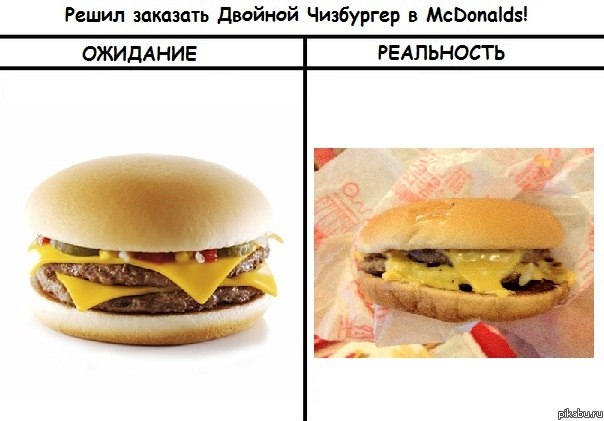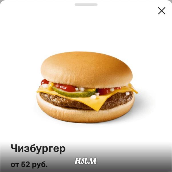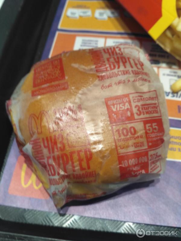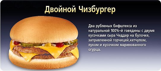 Ниже фотография свежеприготовленного Роял Чизбургера , который Вы получите, купив его в одном из ресторанов Макдональдс.