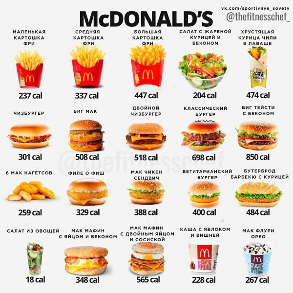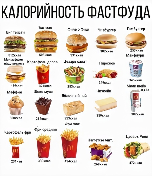 таблица калорийности продуктов Макдональдс — Когда терять уже нечего, настает время находить. — ЖЖ