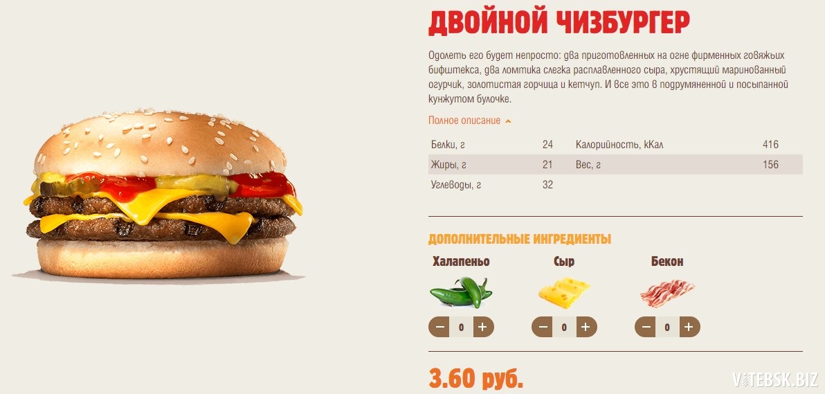 Двойной Чизбургер — 440Ккал